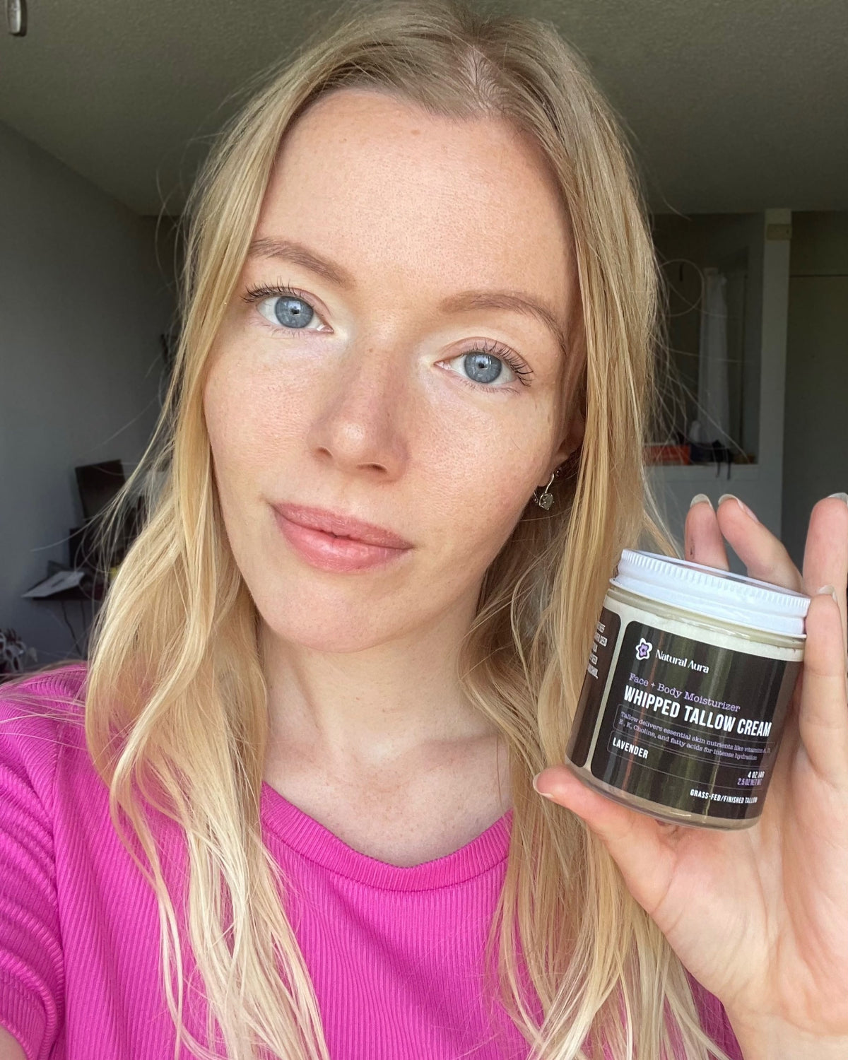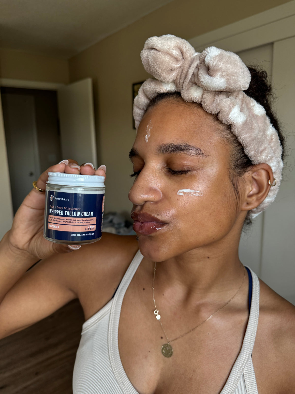 A: Grass-fed beef tallow is naturally rich in vitamins A, D, E, and K — all essential for skin health. It deeply moisturizes, supports skin barrier repair, and helps soothe dryness, redness, and irritation.